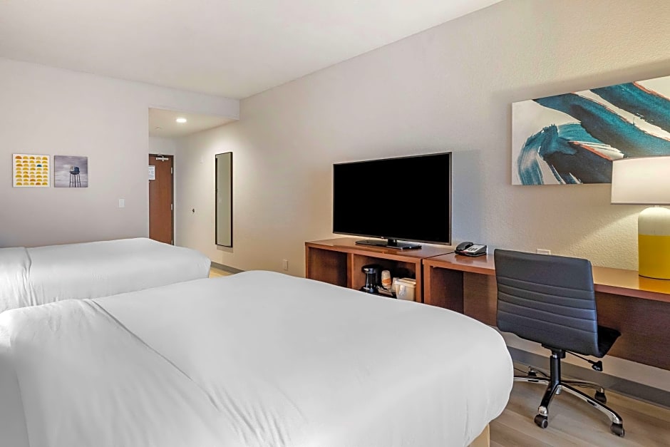 This family room features a tea and coffee maker and a TV. The unit has 2 beds.